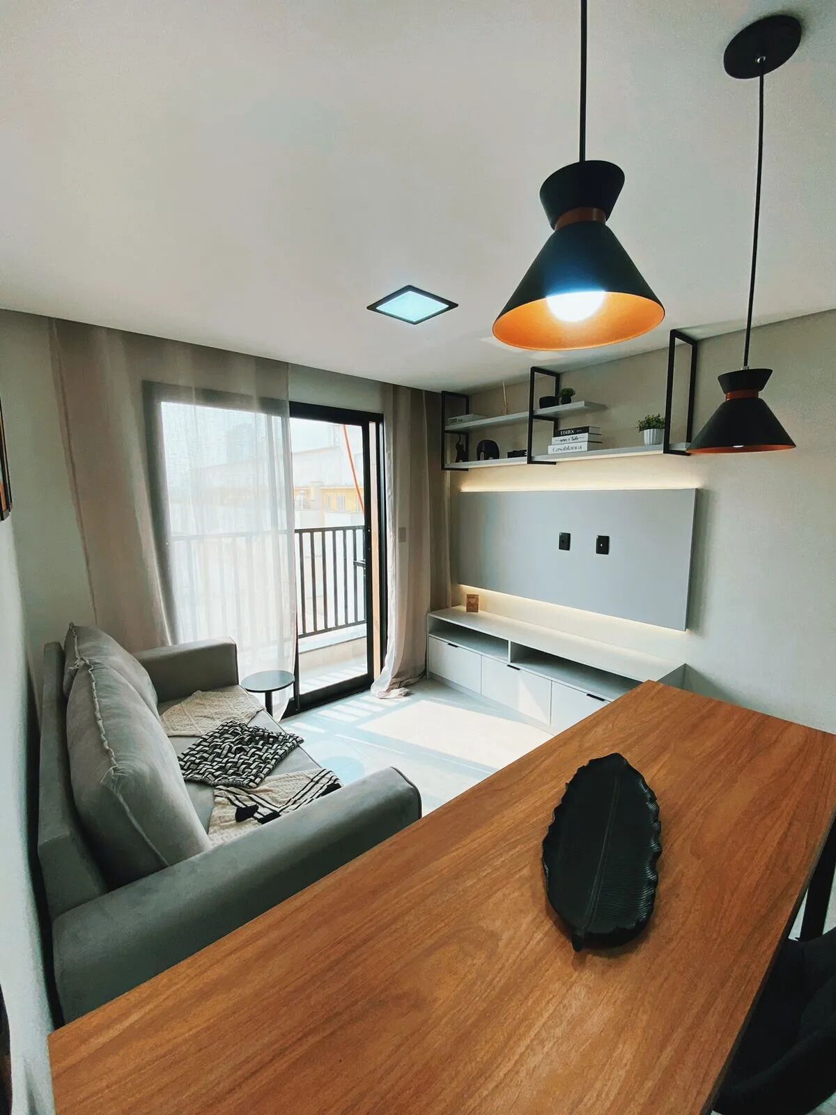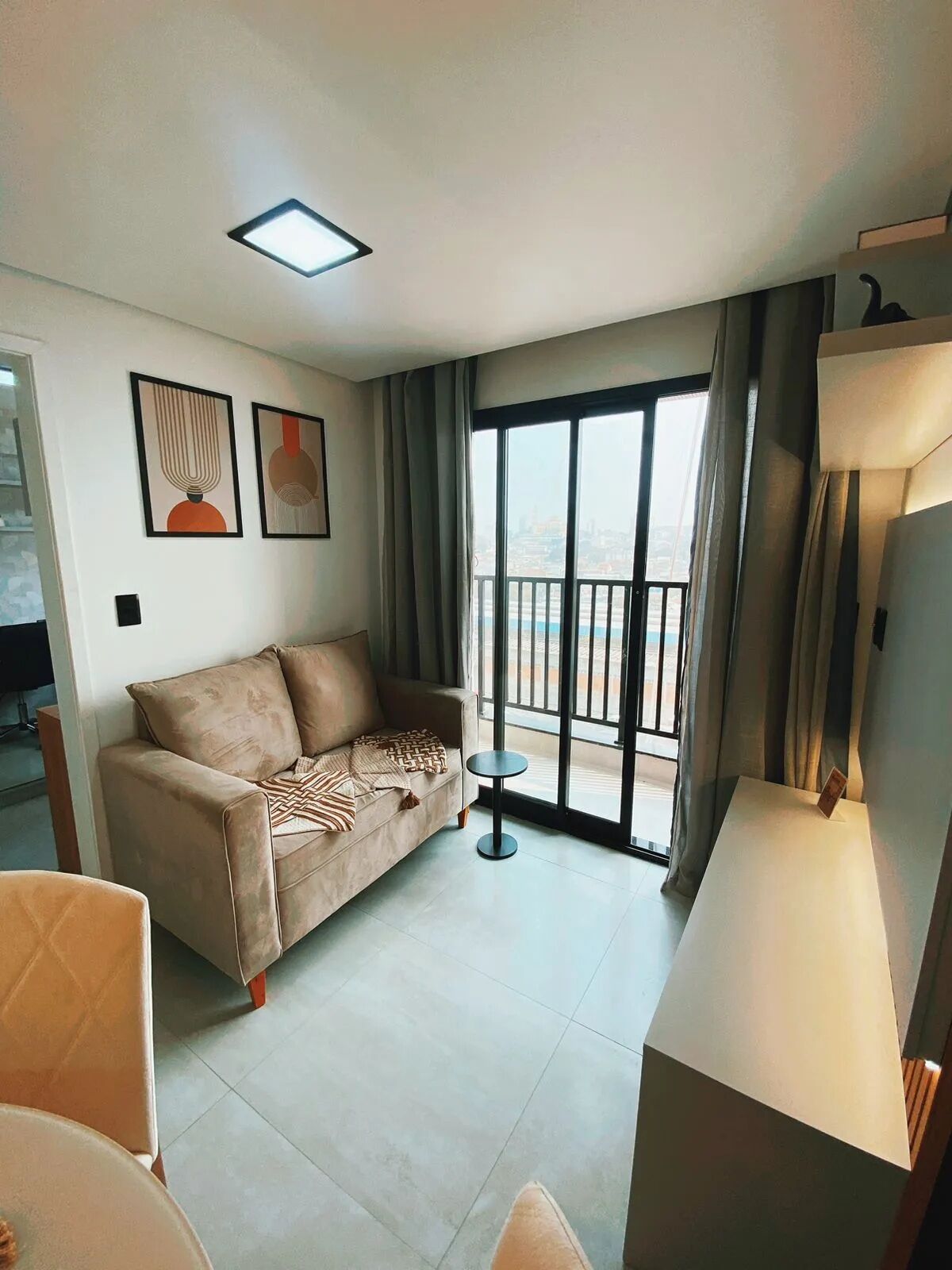 Quarto integrado à sala com sacada